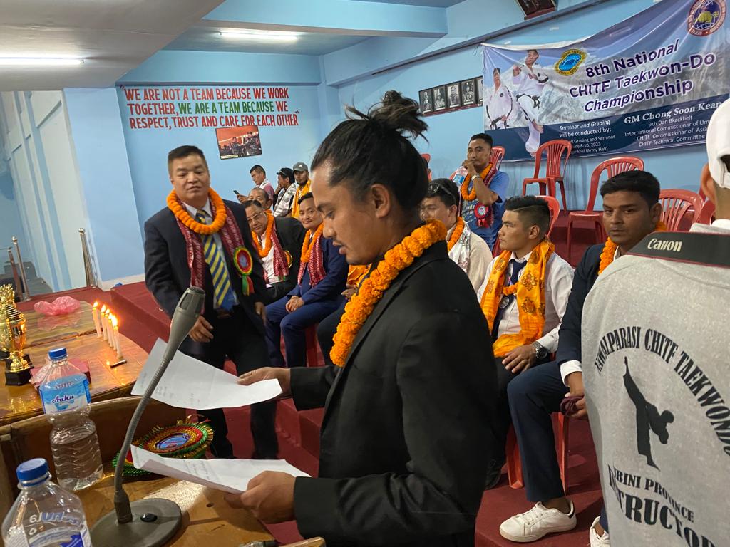 नेपाल सिएच आईटिएफका केन्द्रिय अध्यक्ष कुल बहादुर बुढाको अध्यक्षतामा सम्पन्न राष्ट्रिय प्रतियोगिता तथा सेमिनारमा अन्तराष्ट्रिय टेक्निकल मेम्बर ग्रान्ड मास्टर चोङ सून (किनकालो पेटि ९ डान)ले सेल्फ डिफेन्स, बेसिक एवम प्याट्रन विधामा प्रशिक्षण प्रदान गरेको नेपाल सिएच आईटिएफका महासचिव रमेश विश्वकर्माले जानकारी दिनुभएको छ ।