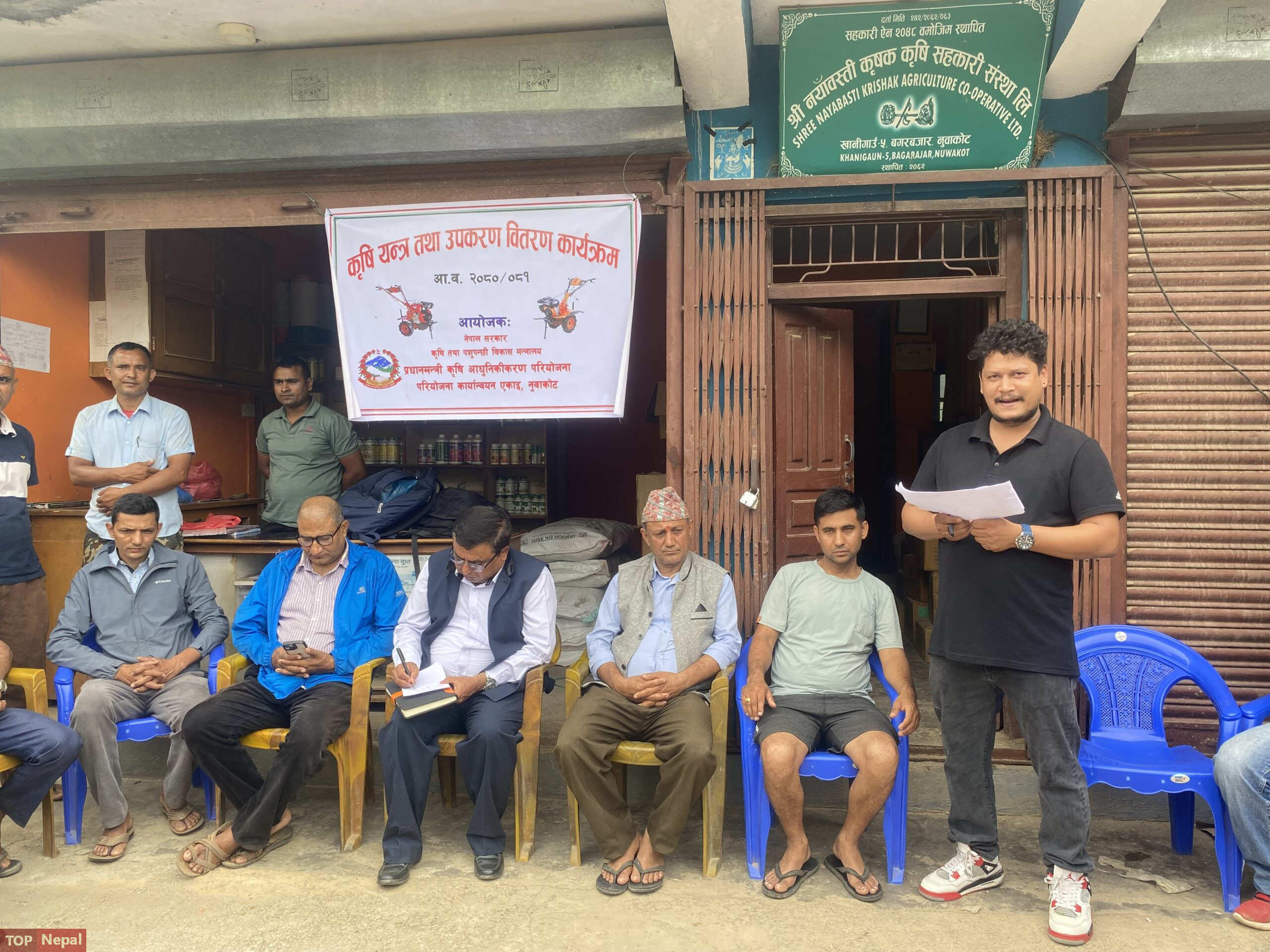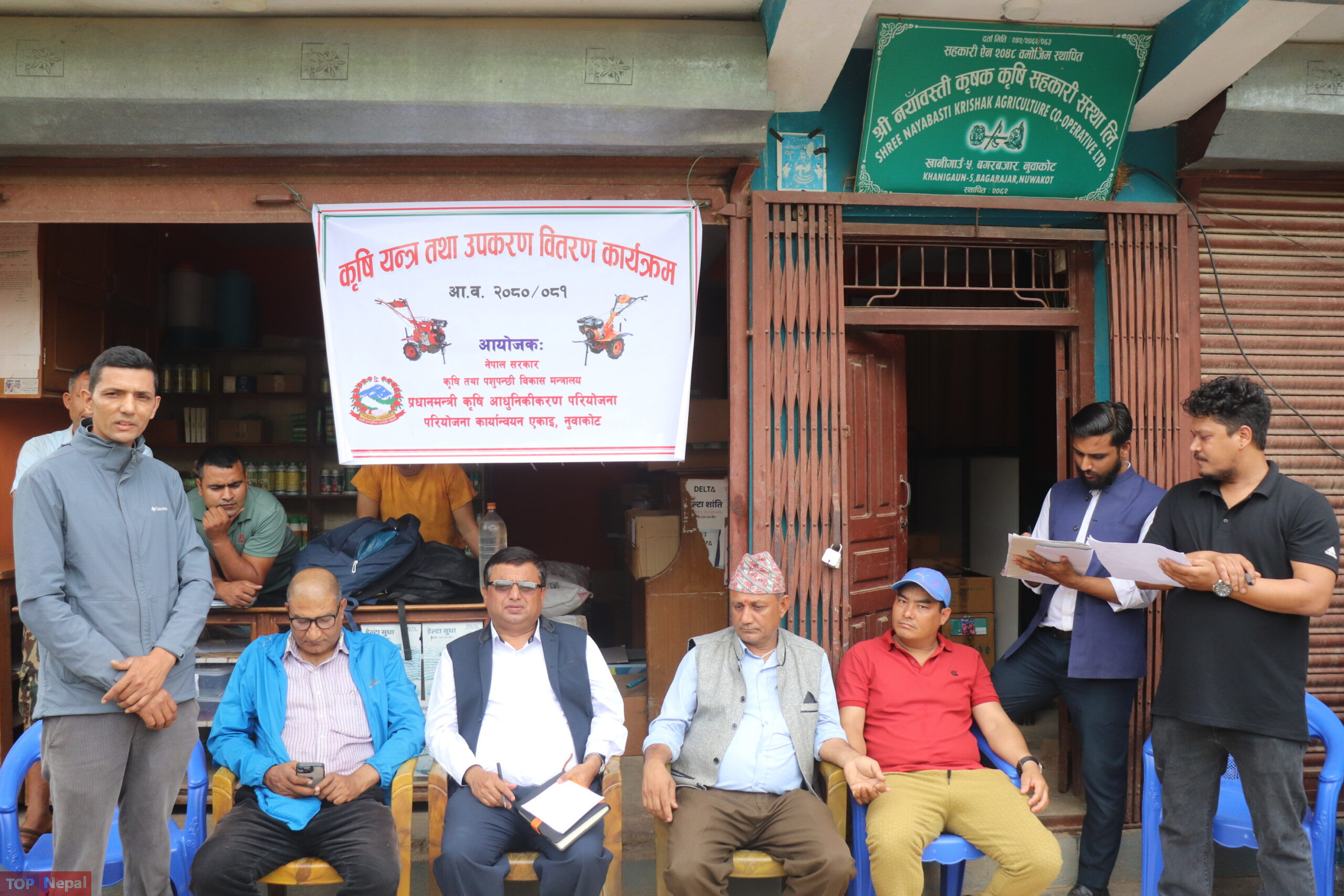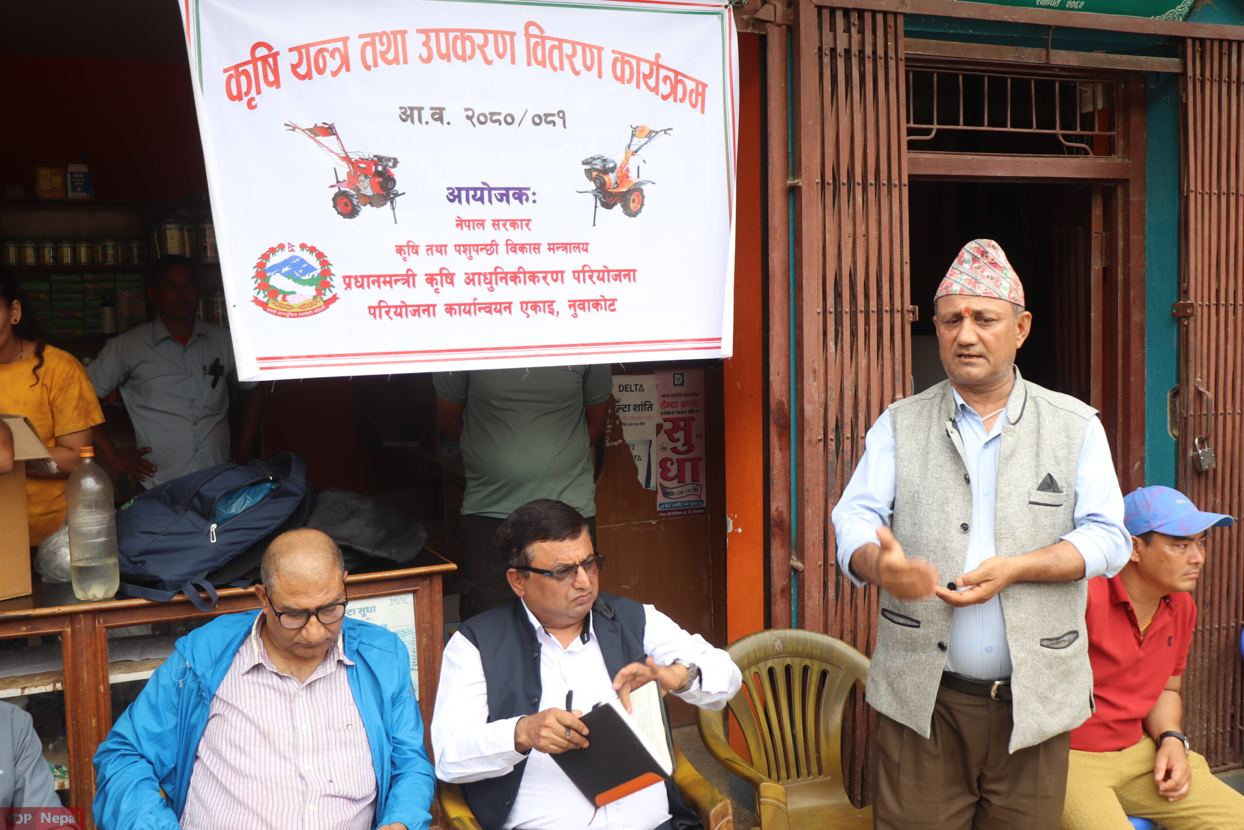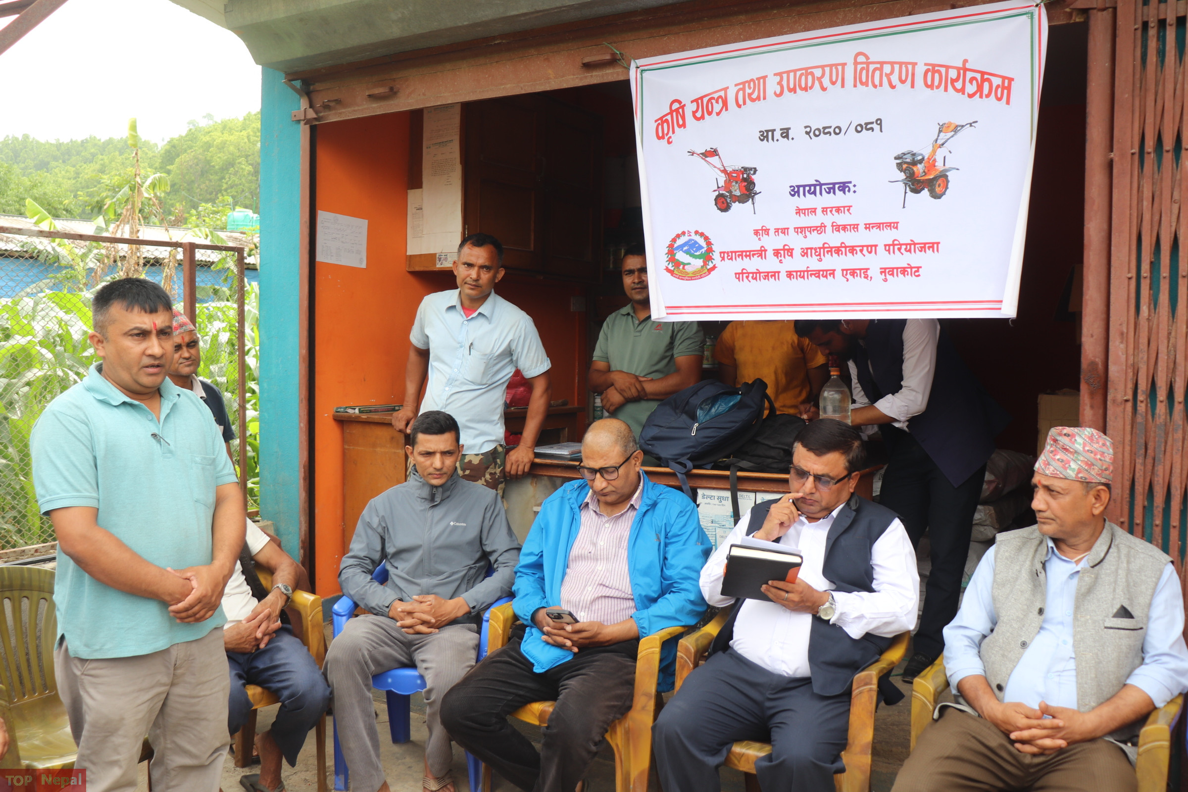 प्रधानमन्त्री कृषि आधुनिकीकरण परियोजना, परियोजना कार्यान्वयन एकाई, नुवाकोटले बिहीबार नै जिल्लाको तादी गाँउपालिका वडा नं २,३,४ र ५ का किसानहरुको लागी ४८ थान मिनीटिलर र वटा २ कम्बाइन मिल (कुटानी–पिसानी) ५० प्रतिशत अनुदानमा उपलब्ध गराएको छ ।