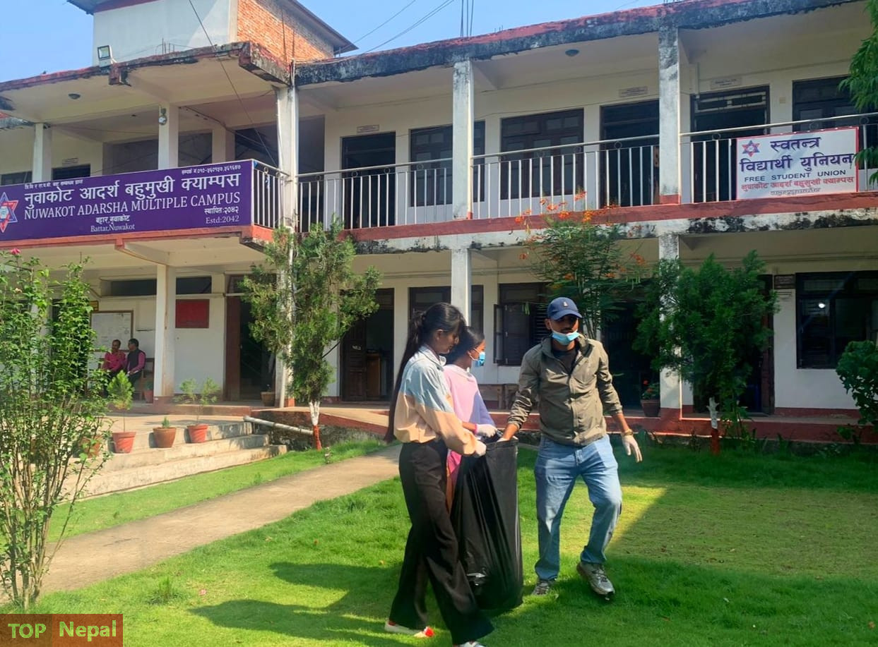 अखिल (समाजवार्दी) नुवाकोटको आयोजनामा गरिएको बृहत्त सरसफाई कार्यक्रमको सभापति जिल्ला अध्यक्ष विवेक सी हुनुहुन्थ्यो भने अतिथीहरुमा नेकपा नुवाकोटका सेक्रेटरी आरपी सी, (अखिल समाजवादी)को केन्द्रीय सचिवालय सदस्य तथा धादिङ र रसुवा इञ्चार्ज मेघेन्द्र सी, नुवाकोट इञ्चार्ज रोजी सी लगायत नेकपा पाटी र विद्यार्थी संगठन (अखिल समाजवादी)को विभिन्न जिम्मेवारीमा रहेकाहरुको सहभागिता रहेको थियो ।