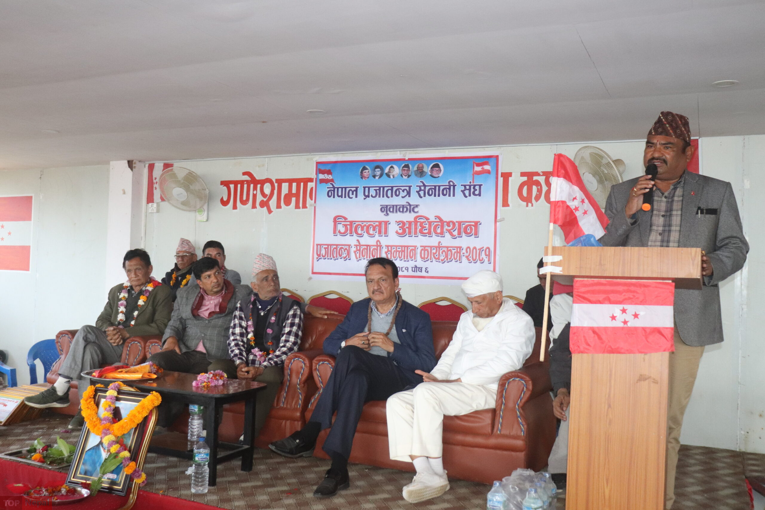 नुवाकोटको विदुरमा शनिबार आयोजित नेपाल प्रजातन्त्र सेनानी संघको अधिवेशन एंव प्रजातन्त्र सेनानी सम्मान कार्यक्रमलाई सम्बोधन गर्दै ठूलो पाटी भएकाले काँग्रेस भित्रको आन्तरिक विवादले पाटीलाई कमजोर बनाएको गुनासो गर्नुभयो ।