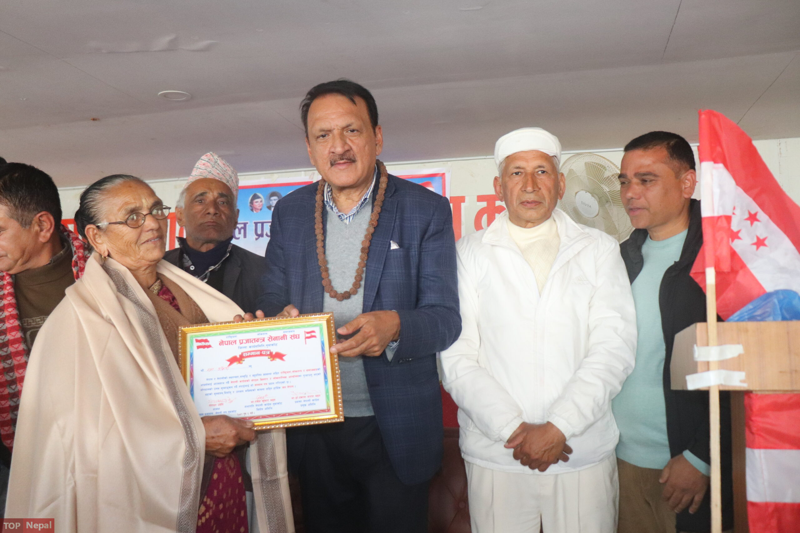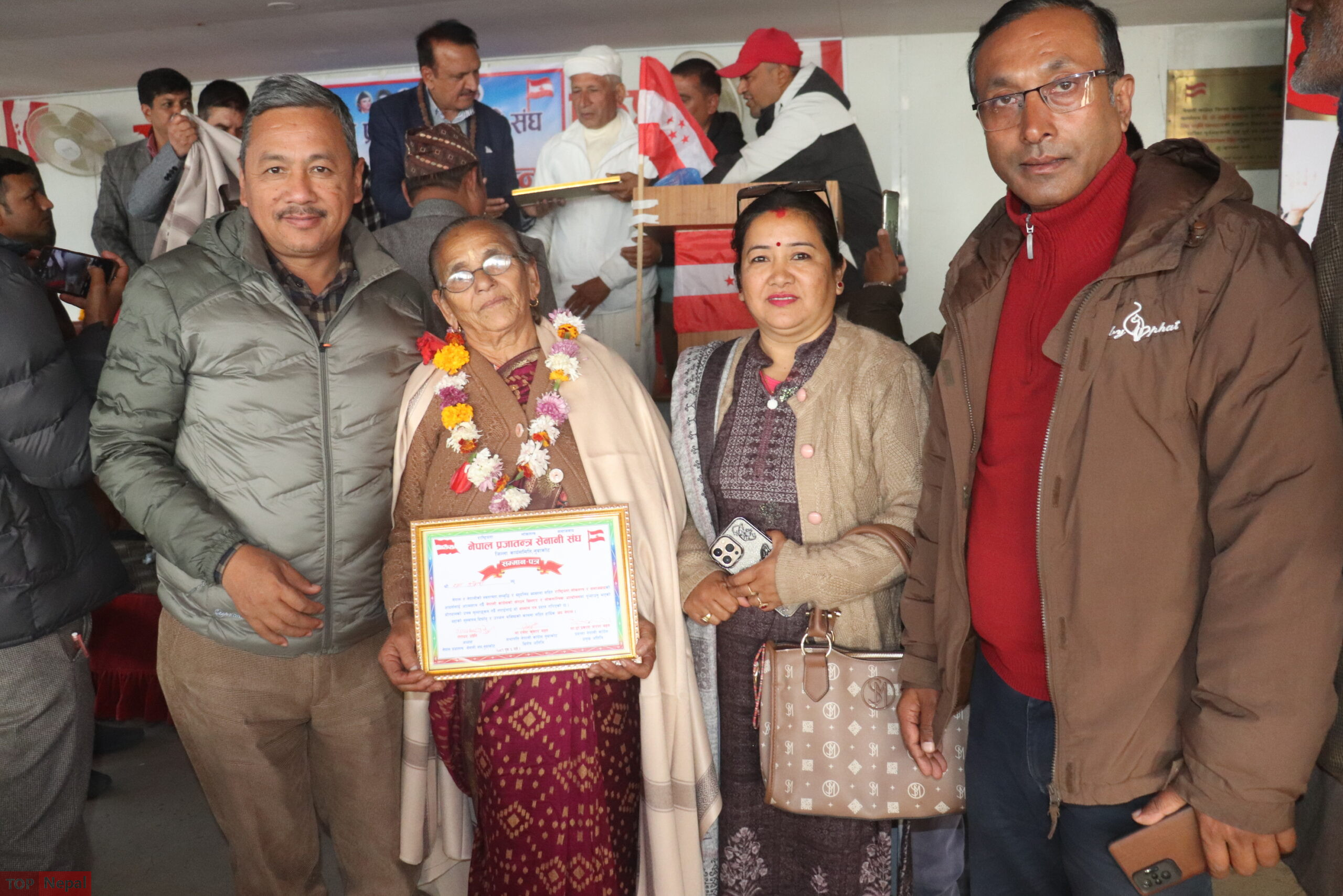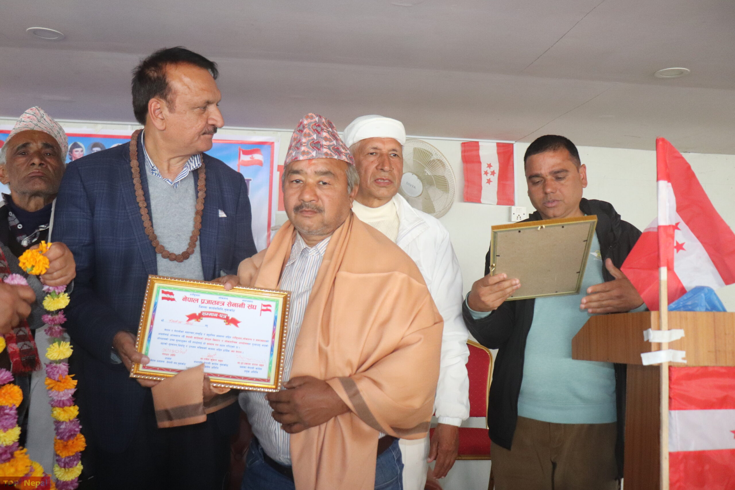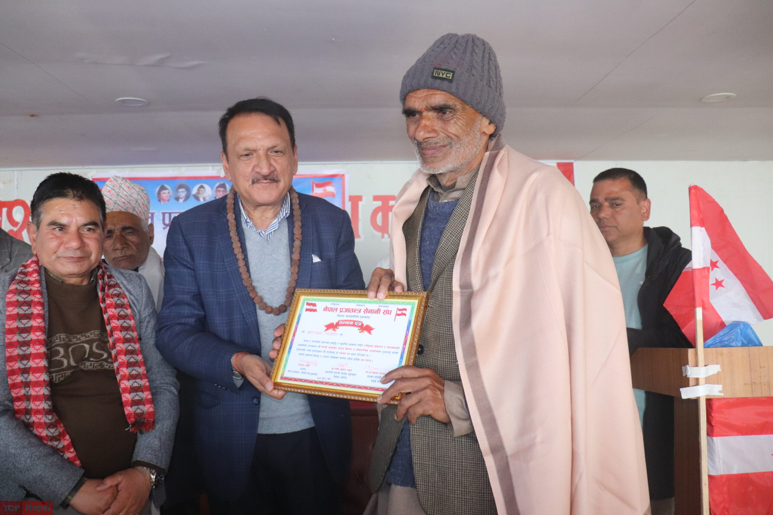 सो अवसरमा प्रजातन्त्र स्थापनाको लागी विभिन्न समयमा भएका संघर्षमा योगदान पु-याएका व्यक्तिहरुलाई ‘प्रजातन्त्र सेनानी सम्मान’ प्रदान गरिएको छ ।