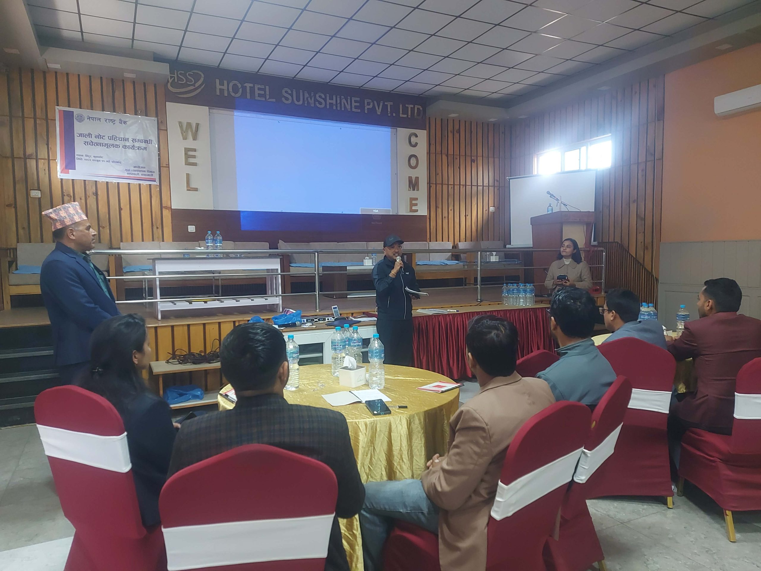 सचेतना कार्यक्रममा जाली नोट पहिचानका लागि नेपाली रुपैयाँको नोटमा रहेका सुरक्षण विशेषताको जानकारी गराई नुवाकोटका सरोकारवालाहरुलाई सक्कली र नक्कली नोटको पहिचान गर्न समेत सहायक निर्देशक पन्थीले आफ्नो प्रस्तुतीकरण मार्फत सजग गराउनुभयो ।
