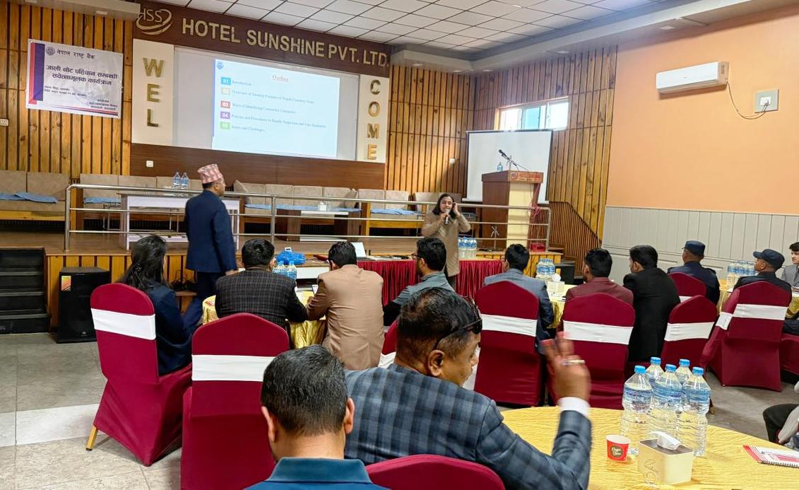 अन्जानमा नक्कली नोट हात पर्दा सर्वसाधारण ठगिने मात्र नभएर कानुनी झमेलामा समेत पर्ने जोखिम हुनसक्ने भन्दै नुवाकोटका सरोकारवालाहरुलाई सक्कली र जाली (नक्कली) नोट सम्बन्धि सजग गराइएको मुद्रा व्यवस्थापन विभागका सहायक निर्देशक रुकु पन्थीले जानकारी दिनुभयो ।
