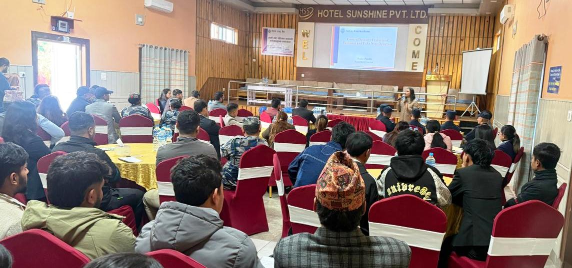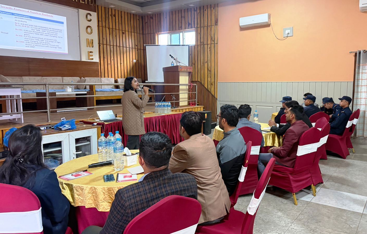 नोटको सुरक्षाको लागी नेपाल राष्ट्र बैंकले तीन चरणको सुरक्षण पद्धती अपनाउने हुदाँ पहिलो चरणमा जो काही पनि पनि हेरेर, महशुस गरेर र ढल्काएर पनि नोट सक्कली भए नभएको थाहा पाउन सकिने सम्बन्धमा उहाँको प्रस्तुतीकरण मार्फत स्पष्ट पारिएको थियो ।