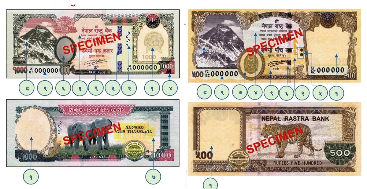 यस्तै, नोटमा रहेको कुबेरको रङ सुनौलोबाट हरियो हुन्छ । मेसिनबाट थाहा पाउन युभी लाइटमा सगरमाथाको आकृति, गभर्नरको सही र नोटका नम्बरहरू टल्किने भएकाले जो कोही पनि सुरक्षण चरणको पहिलो आधारमा नै थाहा पाउन सकिने सम्बन्धमा सहायक निर्देशक रुकु पन्थीले जानकारी गराउनुभयो ।