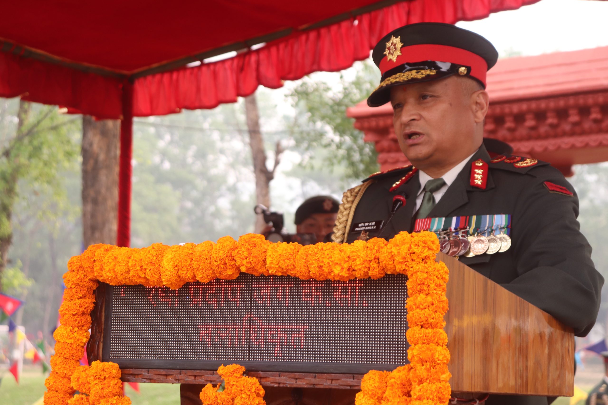 उहाँले दिक्षित सैनिकलाई सेनाको मुख्य दायित्वको रुपमा विपत् व्यवस्थापन, विकास निर्माणमा सहयोग, प्राकृतिक श्रोतको संरक्षण, ऐतिहासिक सम्पदाको सुरक्षा, स्थानीय प्रशासनलाई सहयोग सहित विश्वमा शान्ति स्थापनार्थ पु-याउदै आएको सेवामा विश्वसनीय सँस्थाको रुपमा बनाएको छवी कायम राख्ने जिम्मेवारी पूरा गर्नका लागी तयार रहन निर्देशन दिनुभयो ।